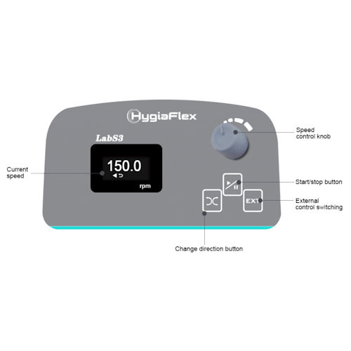 Le pompe peristaltiche Hygiaflex LABS1 / LABS3 offrono un funzionamento silenzioso, regolazione velocità a mezzo della manopola digitale, backup della memoria, impostazioni utente salvate in caso di interruzione dell’alimentazione elettrica